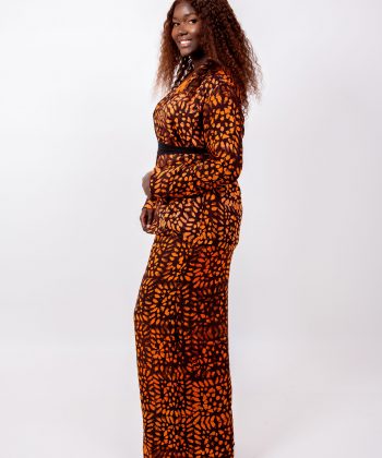 Découvrez l’Ensemble Pantalon Leya Thina-Fashion, une tenue unique qui combine élégance, modernité et confort.Cet ensemble séduit immédiatement grâce à son imprimé artistique orange et noir, vibrant et puissant, parfait pour les femmes qui aiment se démarquer avec style.