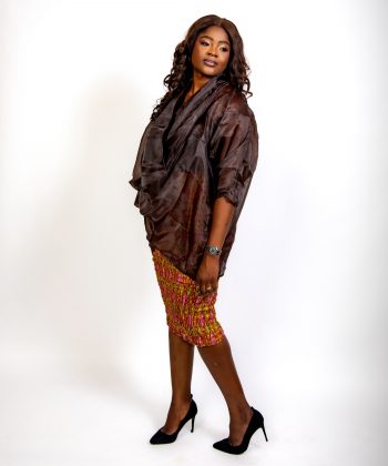 Thina-Fashion - Ensemble Prestige Maeva en pagne Kente & Voile Marron