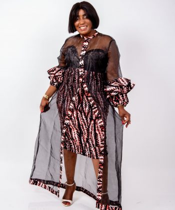 Découvrez l’Ensemble Prestige Lina Organza & Wax Thina-Fashion, une création sophistiquée qui combine la richesse du wax africain et la finesse de l’organza.L’ensemble comprend une robe courte en wax aux motifs rouges, noirs et blancs, offrant un visuel dynamique et moderne.