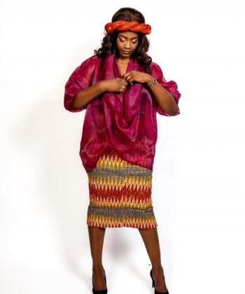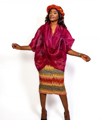 Thina-Fashion - Ensemble Prestige Maeva en pagne Kente & Voile Bordeaux (Copie)
