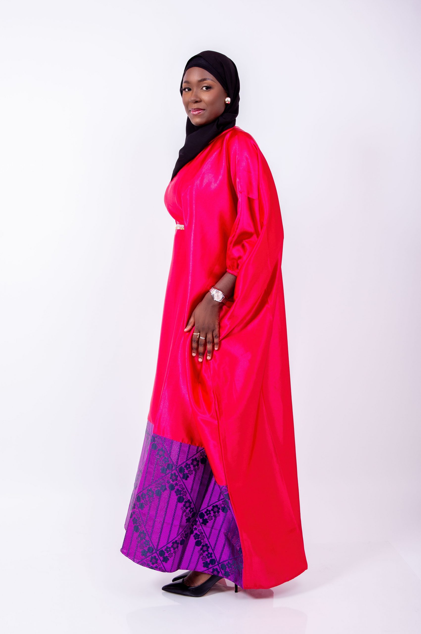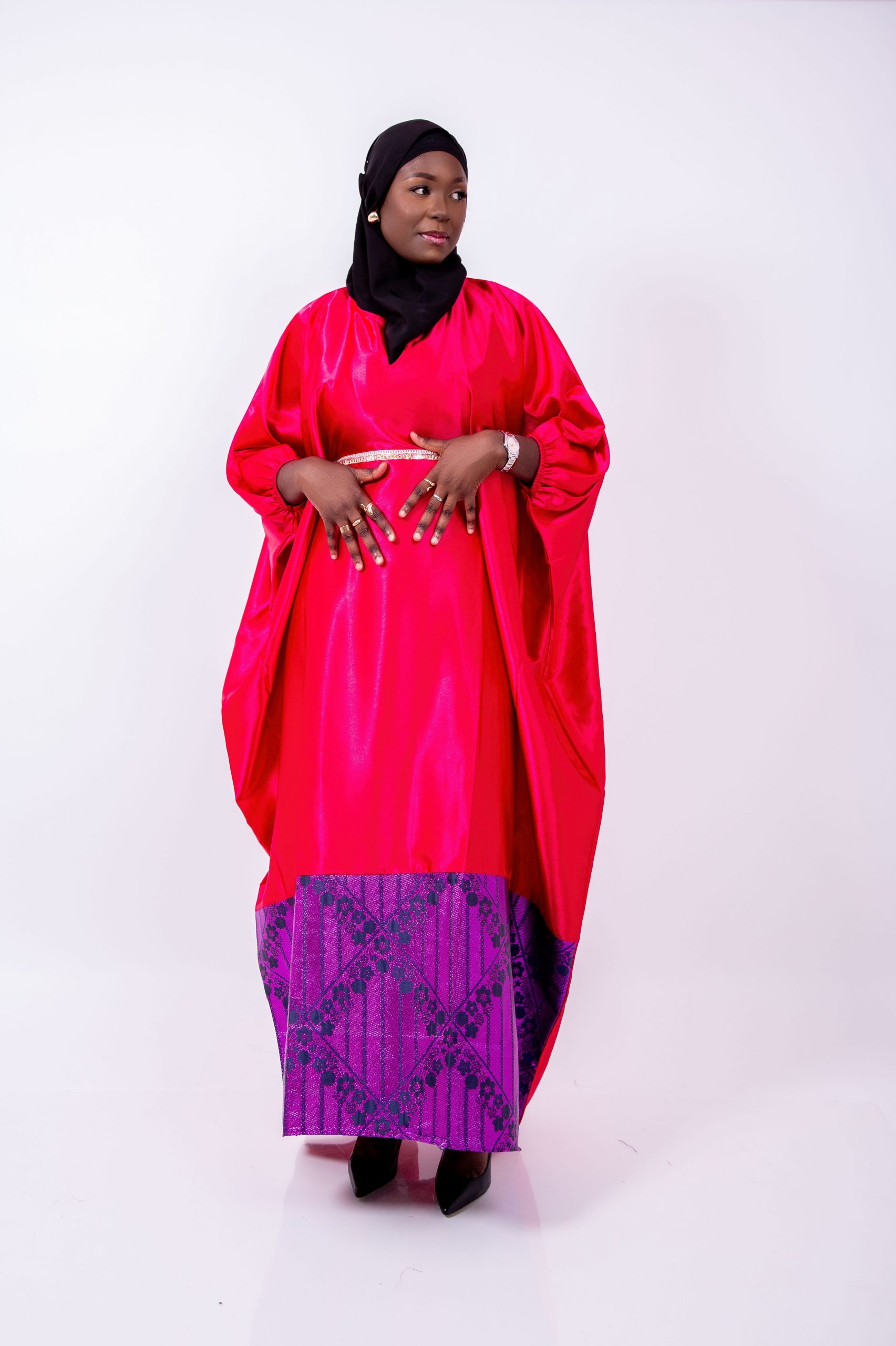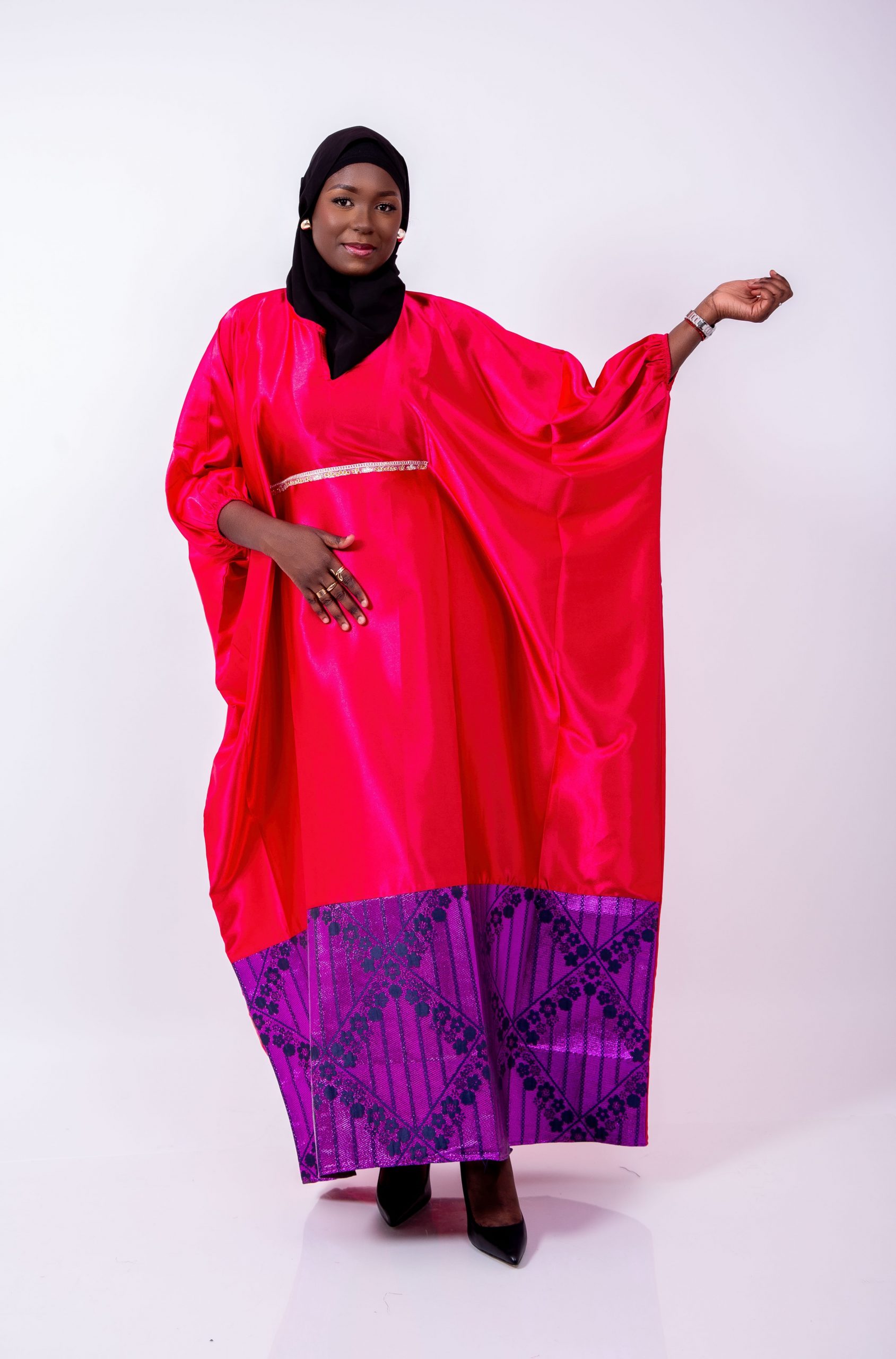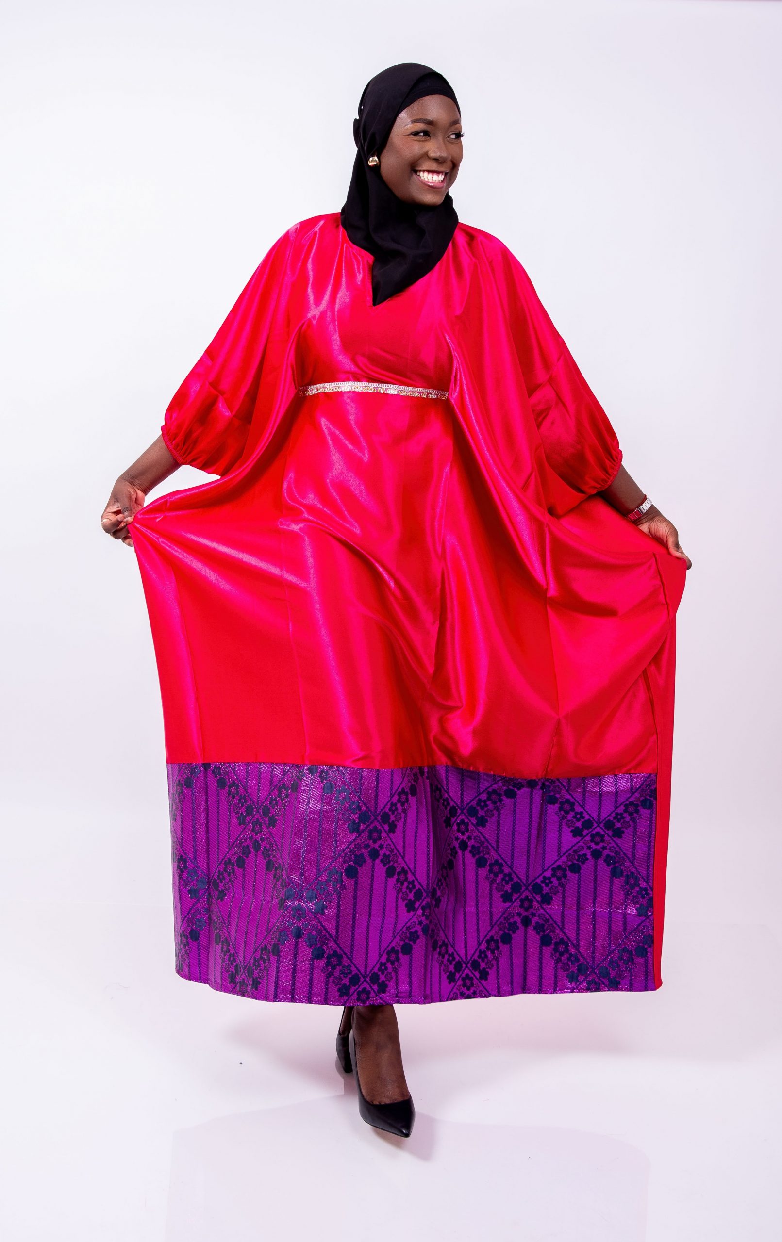 La Robe Caftan Royale Rouge & Brocard Violet de Thina-Fashion est une pièce d’exception qui allie modernité, tradition et élégance.
