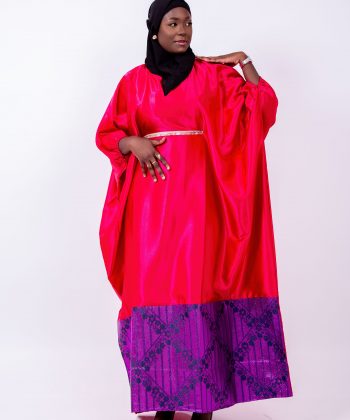 Thina-Fashion – Boubou Impérial Soie Rouge & Brocard Violet