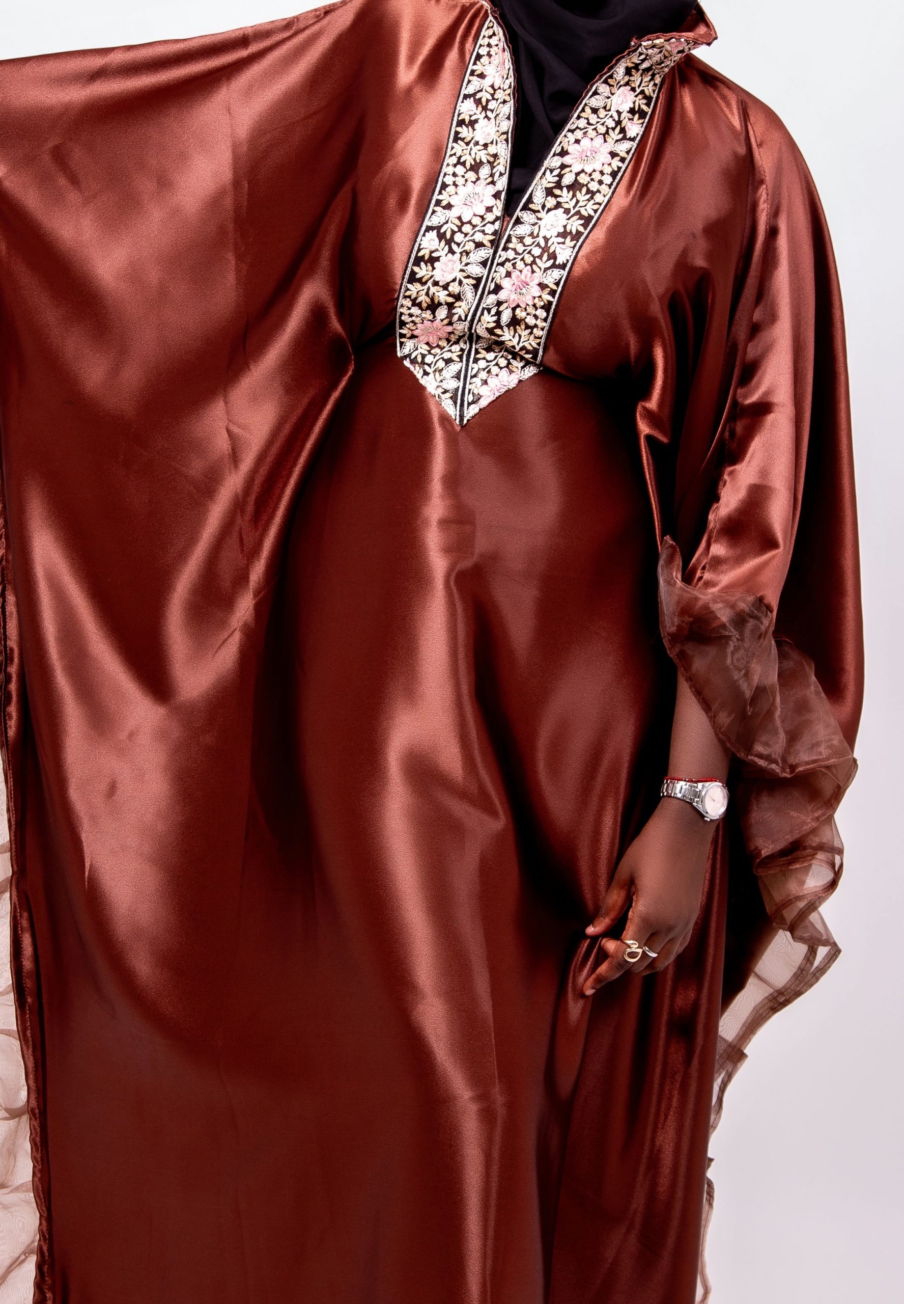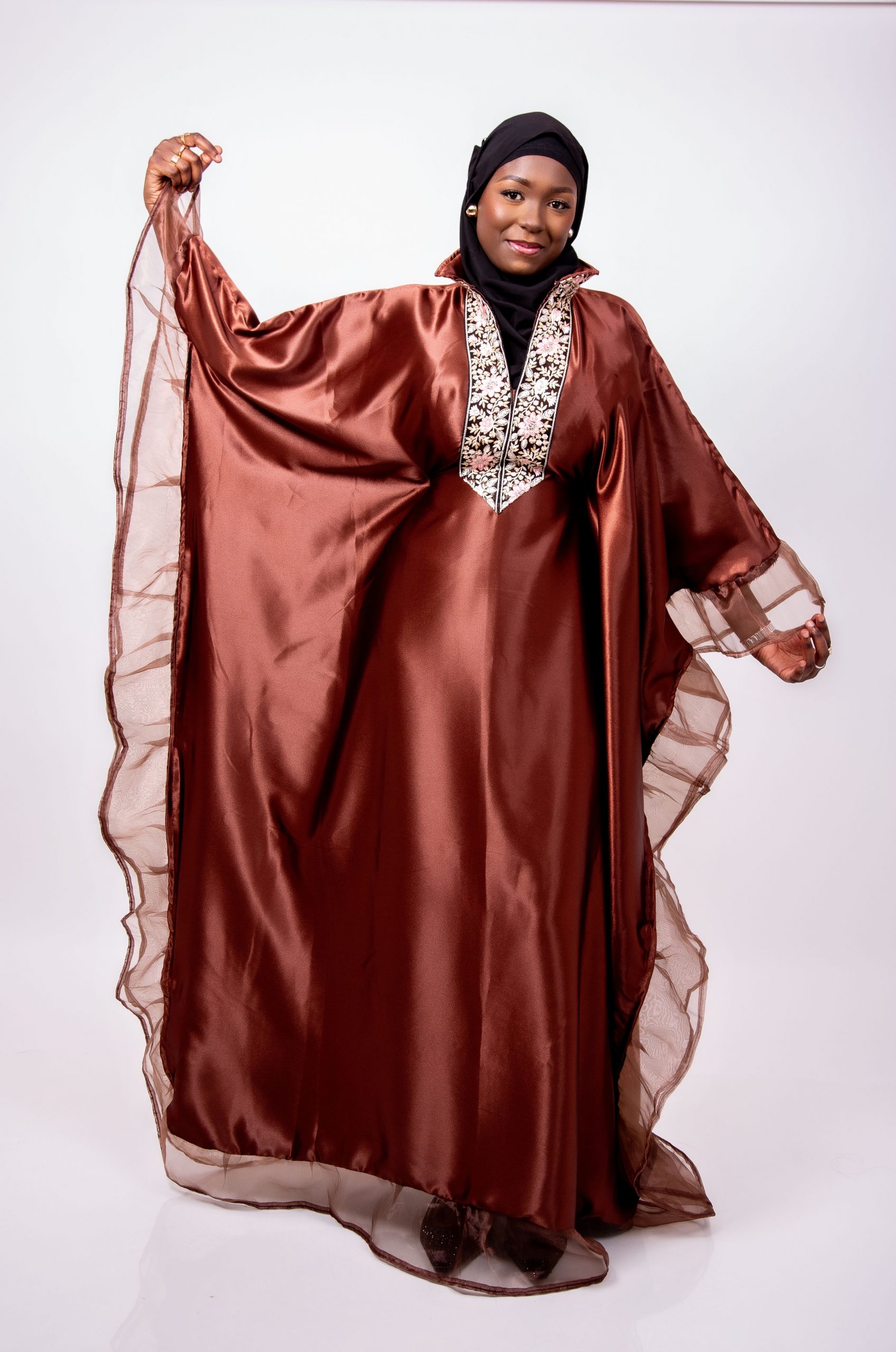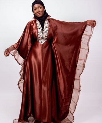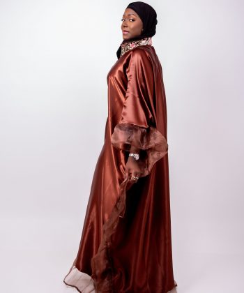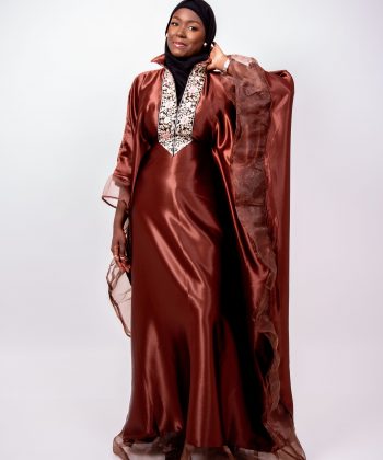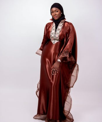 Laissez-vous séduire par Leila, un boubou majestueux qui allie douceur, fluidité et raffinement. Conçu dans un tissu satiné marron légèrement brillant, Leila offre une allure noble et féminine grâce à sa coupe ample et gracieuse.