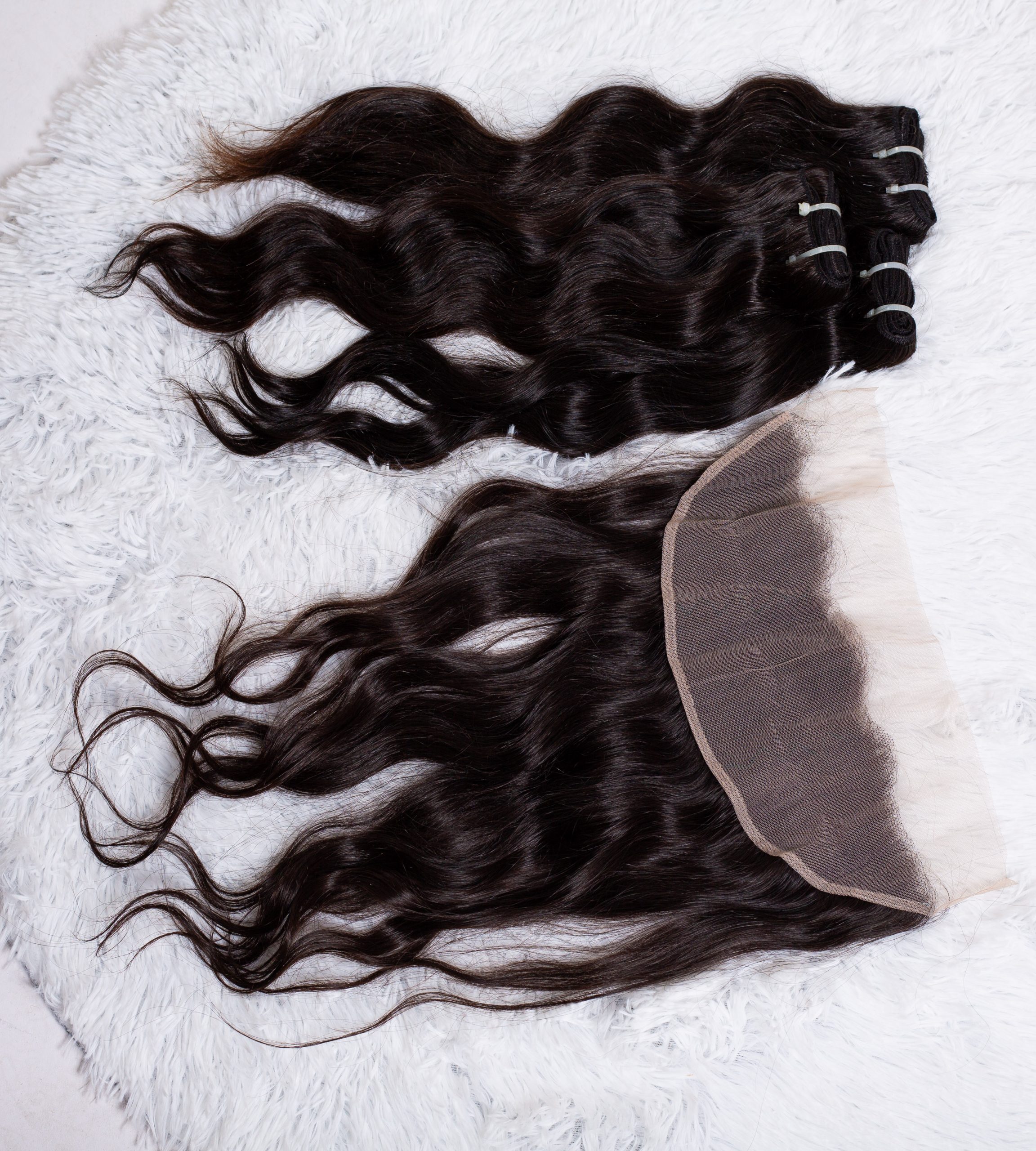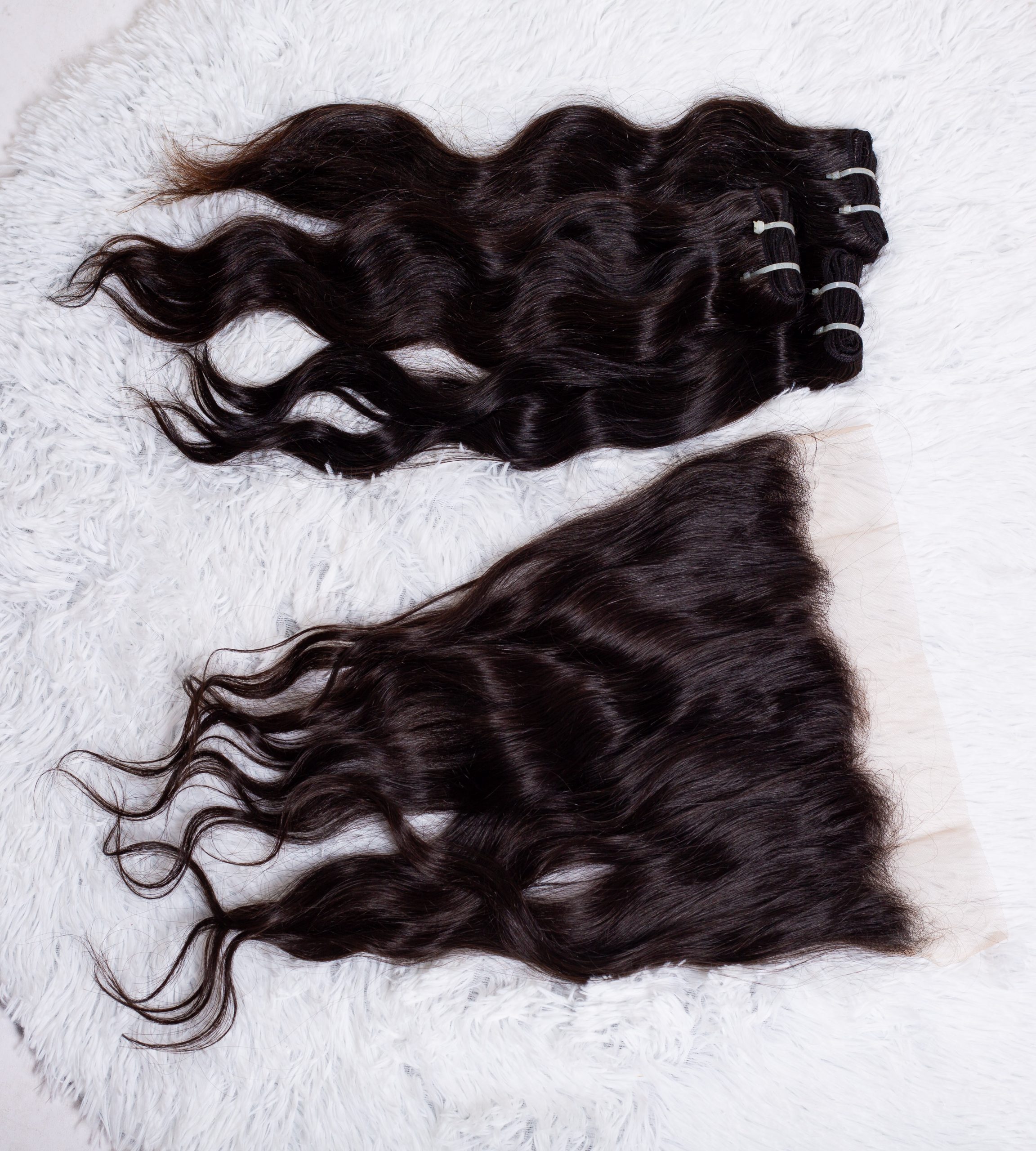 Ce pack comprend 3 bundles en Raw Hair + 1 frontale 13×4, parfait pour obtenir du volume, de la longueur et une finition professionnelle.