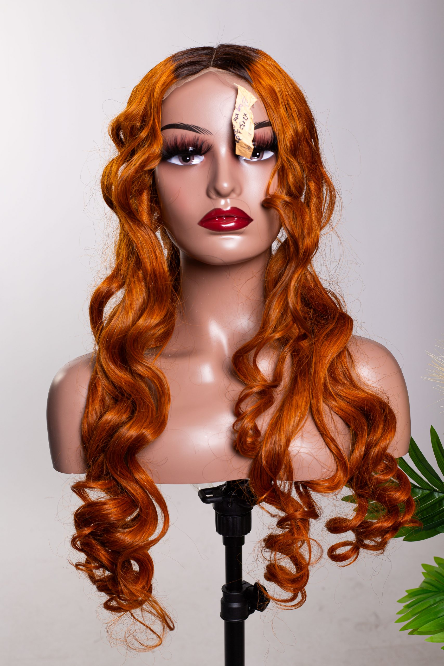 Thina-Fashion – Perruque Premium SDD vietnamienne 28 pouces ondulée cuivrée