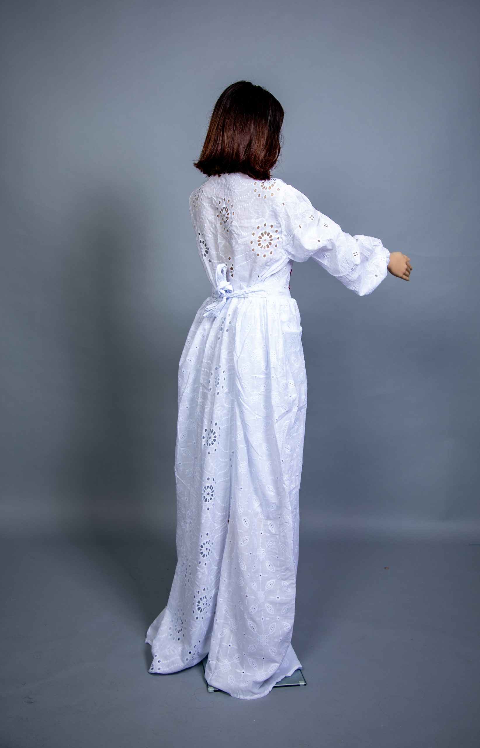 Découvrez la Robe Blanche “Rosalia” – Thina-Fashion, une création d’une pure élégance, pensée pour sublimer votre féminité avec douceur et raffinement. Confectionnée dans une broderie anglaise blanche délicate, cette robe longue incarne la grâce, la légèreté et le charme intemporel.
