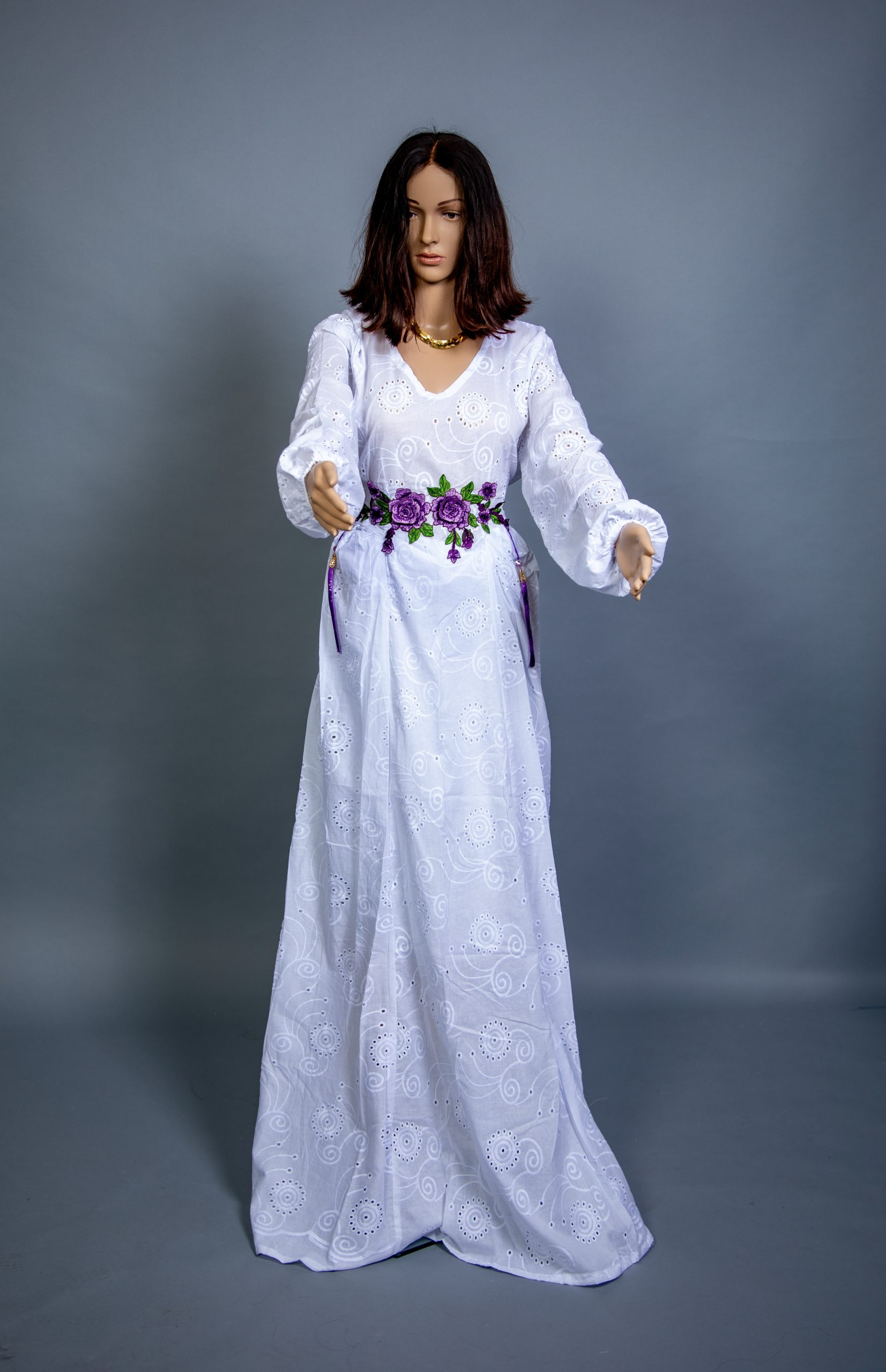 Découvrez la Robe Blanche “Rosalia” – Thina-Fashion, une création d’une pure élégance, pensée pour sublimer votre féminité avec douceur et raffinement. Confectionnée dans une broderie anglaise blanche délicate, cette robe longue incarne la grâce, la légèreté et le charme intemporel.