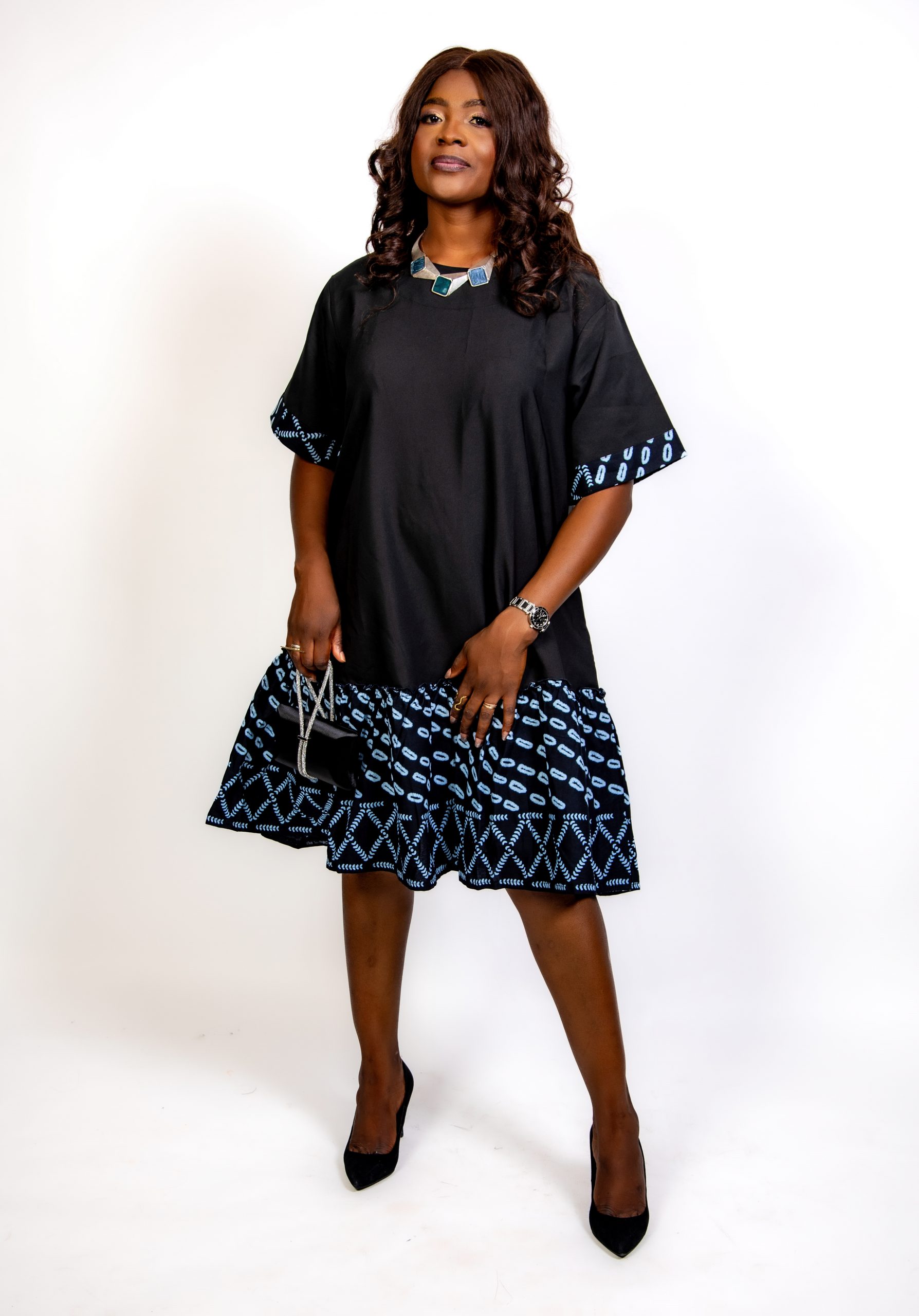 Chic, moderne et confortable, la Robe Évasée Noire & Motifs Africains Bleus – Thina-Fashion est une pièce indispensable pour un style raffiné au quotidien comme en sortie. Sa coupe ample et fluide met en valeur toutes les silhouettes tout en offrant une aisance incomparable.